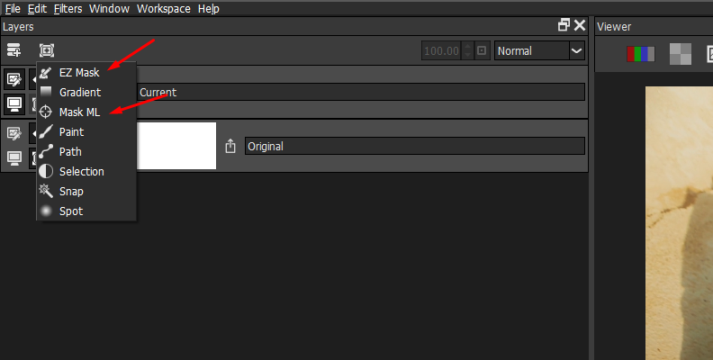 Let's start by isolating the shadows in the photo. Press the Add Mask button at the top of the layers panel and choose one of the mask types.