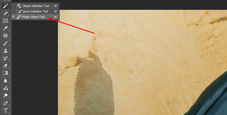 Import the photo and use the magic wand tool or any other selection tool to select the shadows in the image.