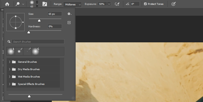 Select one of the Paint tools from the top bar, adjust the size and smoothness of the brush for better results, and start painting over the shadows.